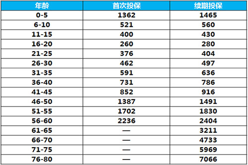 如图所示,16-20岁之间投保是最便宜的年龄层,并且该产品最高可以续保至80岁,也就是说最低每天0.7元即可拥有百万保障。