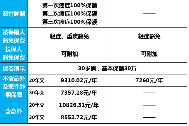保费演示:30岁(男)作为被保险人,投保基本保额30万。