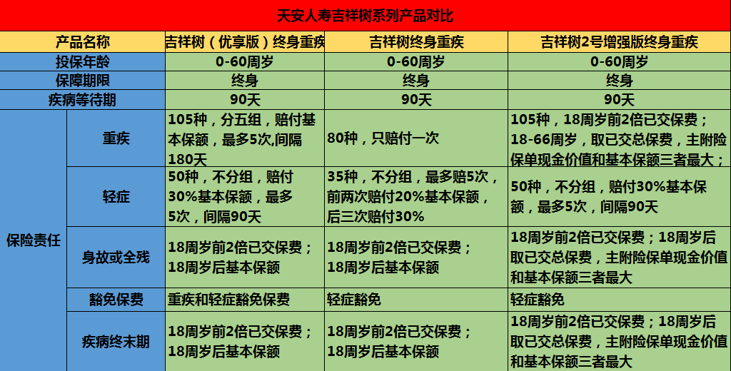 【小编建议】近来各家公司密集推出重疾险,各有优点,但是天安的这款可以说,是目前重疾类中十分优越的产品,如果资金足够,推荐购买此产品。