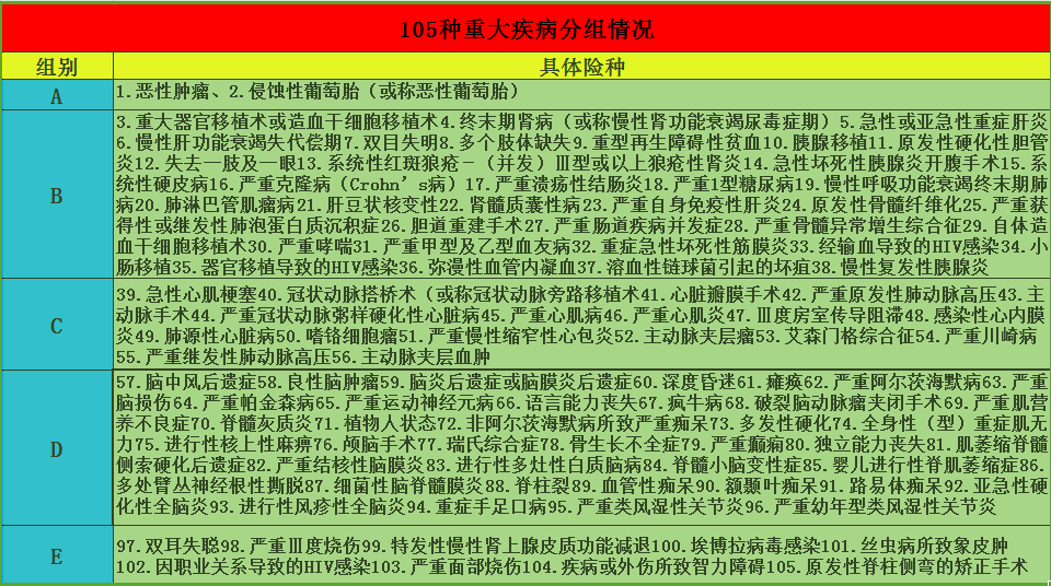 3.重大疾病分五组可累计赔付五次,间隔期180天;