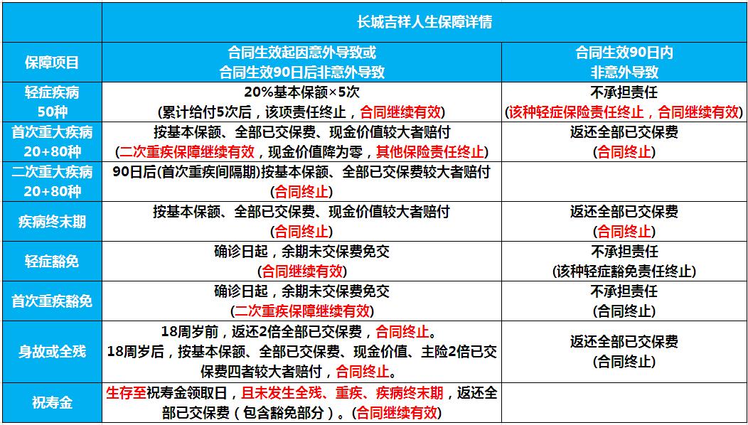 4、等待期内发生轻症,该种轻症疾病的保险责任终止,但其余保障依然有效。相对于其他同类产品等待期内发生轻症退还保费,合同终止,吉祥人生的这个设计非常给力。