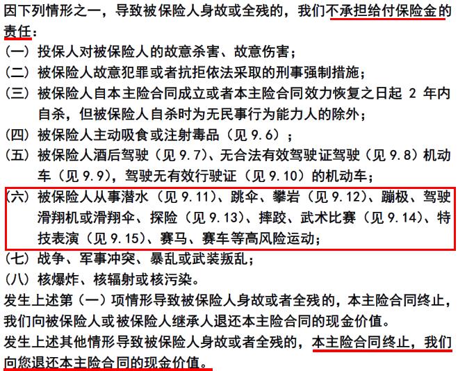 1、主险-吉祥人生两全保险,将高风险运动导致的身故或全残列为责任免除,这点设计有点不太合理,喜欢高风险运动的消费者需要注意下这点,如果买了该款产品,最好另外搭配一份高风险运动意外险。