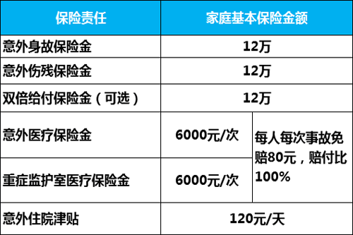 信先生30岁,为自己、爱人、以及1岁的女儿投保了衷心保成信福家家庭意外保障计划2分,年交保费360元,共24万的意外保障,则信先生一家人的保障利益如下: