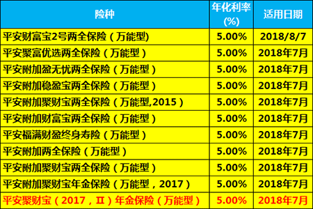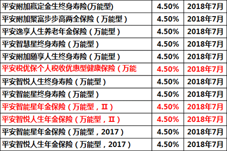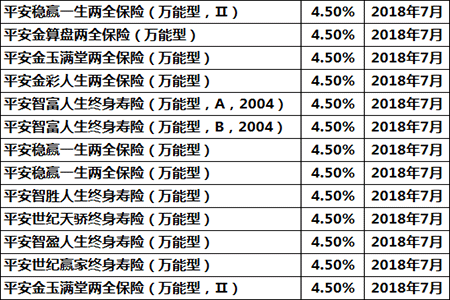 2018年7月平安官网发布的结算利率