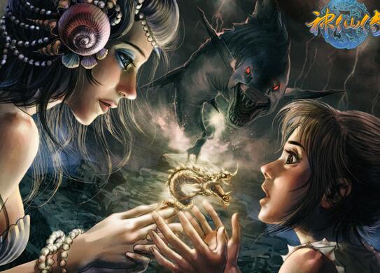 谁也奇怪,海生游到哪里,哪里的潮水海浪就为他让路。原来海生穿的金线衣是纺花仙女特地为他编织的避水宝衣呢!