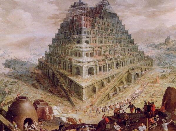 赫赫有名的巴别通天塔就耸立在大道的北面。巴别塔本是巴比伦古城里,一座供奉巴比伦人的主神马都克的神庙。塔的顶端是神殿。有一条石梯可以直通神殿,敬神时,穿着白色法衣的祭司在由乐器伴奏的合唱声中登上塔顶。这座巴别塔就是《圣经·旧约》里的巴别通天塔。“巴别”这个词是巴比伦文,意思是“神的大门”。由于它的读音跟古希伯莱语中的“混乱”一词相似,加上当时巴比伦城里的居民讲的远不止一种语言,《圣经·旧约》的作者也就很容易把“语言混乱”与上帝对建塔的惩罚相联系,编出上述的故事来了。巴比伦古城里最早的巴别通天塔,在公元前689年亚述国王辛赫那里布攻占巴比伦时就破坏了。新巴比伦王国建立后,尼布甲尼撒二世下令重建通天塔。他命令全国不分民族、不分地区都要派人来参加修塔。