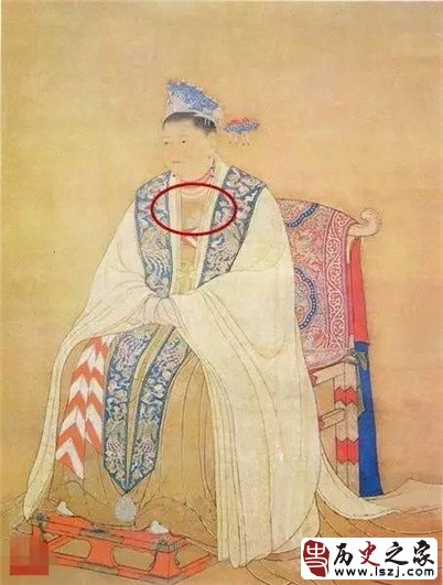 杜太后的这张画像,外穿对襟大袖,颈部戴项链,其下即可见内衣边缘,而非交领中衣,穿法与唐代画家周昉的《簪花仕女图》中侍女略有相近之处,可见此种衣装之流行已经影响到了女性礼服,甚至可以在“标准像”中留影。