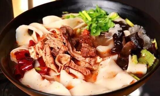 只见被摔打成裤带般宽长面条入锅中,不一会儿捞出来配上各种臊子,最后浇上一勺油泼辣子,顿时香味四溢。看的书生直流口水。于是赶紧来一碗吧。
