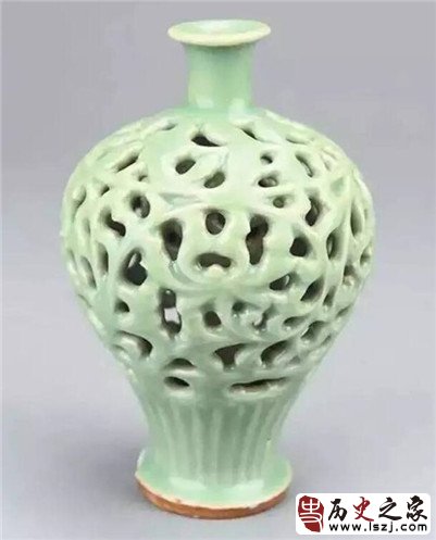 这件镂空花瓶既使用了套接技法又采用了镂空工艺,艺术价值极高。镂空瓷器在宋元瓷器比较常见的是尺寸较大的镂空器座,而精巧完整的元代龙泉窑镂空瓷器则少之又少。在韩国新安沉船出土的来自中国的外销瓷——元代龙泉窑青釉镂刻莲纹瓶是同时代镂空器中的杰作之一,其造型端庄、腹部镂刻莲花纹。与之相比,华亭县出土的青釉镂空花瓶器形更加精致优美,镂刻的花纹繁密紧凑,线条非常流畅。瓷器采用分体组合、镂空技法制造难度大,技术要求高,成品率低。因此,华亭县出土的青釉镂空花瓶无疑是元代龙泉窑瓷器精品中的精品,其发现在西北内陆更显得弥足珍贵。