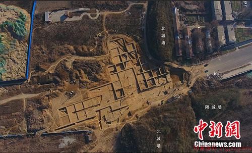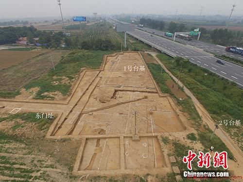 河南新郑郑韩故城遗址中,北城门遗址航拍图。供图