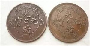 清德宗载淳,光绪年间(公元1875-1908年)铸。钱文楷书或楷兼隶,楷兼宋三体。背文满、回文记局、记年、记吉语,记批次等多种形式。光绪钱是中国造币史上首次引进西洋机制造币方法铸造的第一批中国样式(外圆孔方)的行用钱。另有北洋造光绪通宝机制铜币,背北洋零用一文(公元1902-1908年)