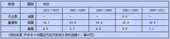 而法国与英美相比,其对华贸易极其薄弱。请看下表: