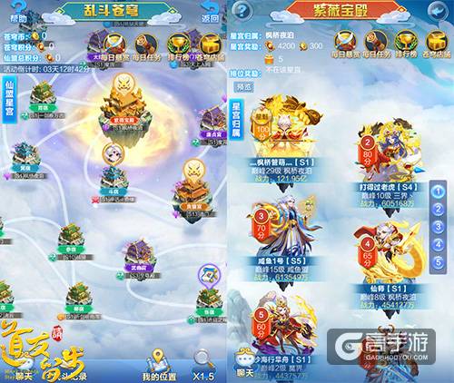 晴空之上,群仙并起,苍穹宝座花落谁家?乱斗苍穹全新赛季限时开启,这一回,你不是一个人在战斗!“乱斗苍穹”是《道友请留步》中不定期开放的限时玩法,玩法开启时,玩家将随机分配到一座星宫内与跨服玩家一起进行PVP战斗。该玩法以仙盟为单位争夺星宫,个人赢得的每一场战斗都会提升自己仙盟的排位,同一仙盟的玩家将共享胜利的果实。